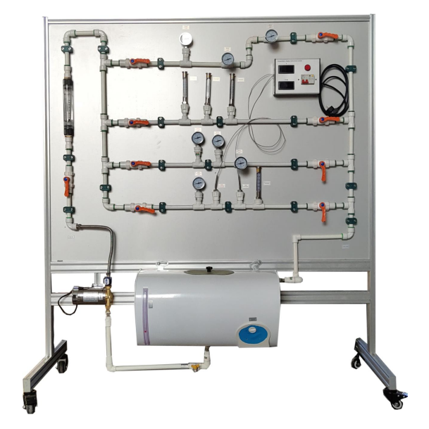 この実験装置は、4つの異なる測定管セクションを含む様々な温度測定方法を学習します。4つの異なる温度計を備えた測定セクションは、ボールバルブを介して個別に選択できます。デジタルディスプレイには、抵抗温度計と熱電対温度計を使用して測定された温度が表示されます。バイメタルダイヤル温度計と液体ガラス温度計は直接指示計です。異なる流れに対する測定装置の応答を調べることができます。